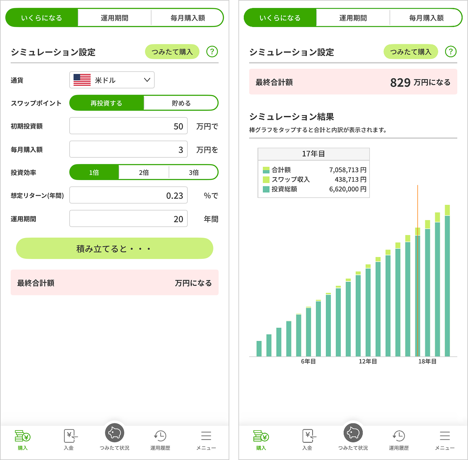 シミュレーション機能で将来の資産状況がイメージでき、お客さまのお考えにあった最適な運用方法を確認できます。