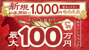 SBI FXトレードの公式ホームページからの口座開設申込にて期間中にFX取引「SBI FXTRADE」の新規口座開設が完了されたお客さまへキャッシュバックいたします。さらなる特典付与のチャンスも!(本キャンペーンはエントリーが必要となります)