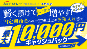 SBI FXトレードのお客さま限定の銀行サービス!条件を達成されたお客さまに、最大10,000円をもれなくプレゼントいたします!