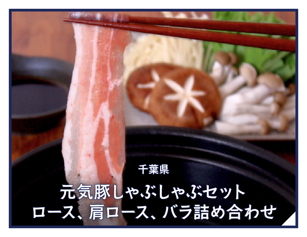 千葉県多古町の大自然の中で育てた元気豚のロース肉、肩ロース肉、バラ肉をしゃぶしゃぶ用に薄くスライスした商品をお届けします。