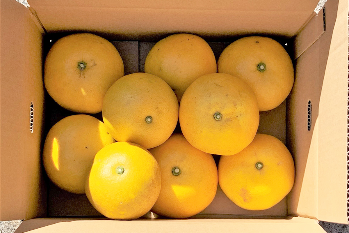 宮崎県の日南市で育てる国産グレープフルーツ「月夜実(つくよみ)」収穫のタイミングを遅めにして樹上完熟させているため、ジューシーで深みのある味わいが楽しめます。