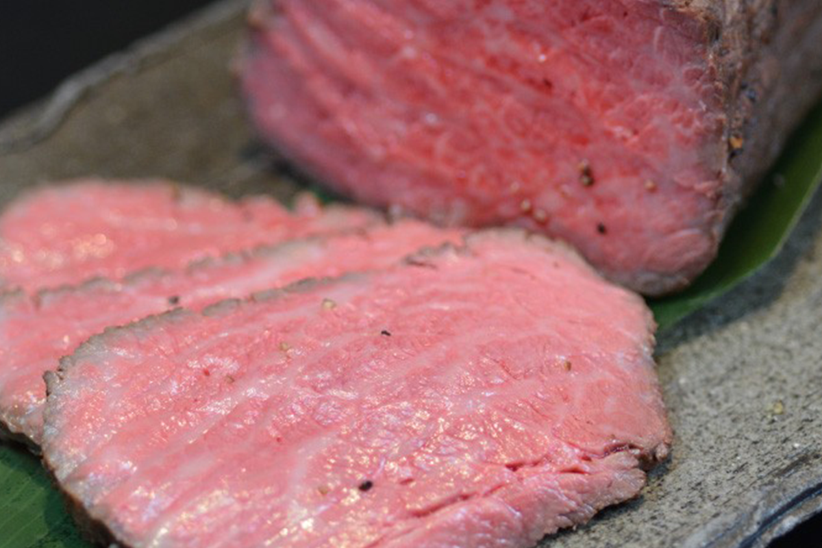 こだわりの餌で育てた自慢の牛。ほどよいサシと、強いうま味。脂の旨味と味わい深いうまみがお楽しみいただけます。
