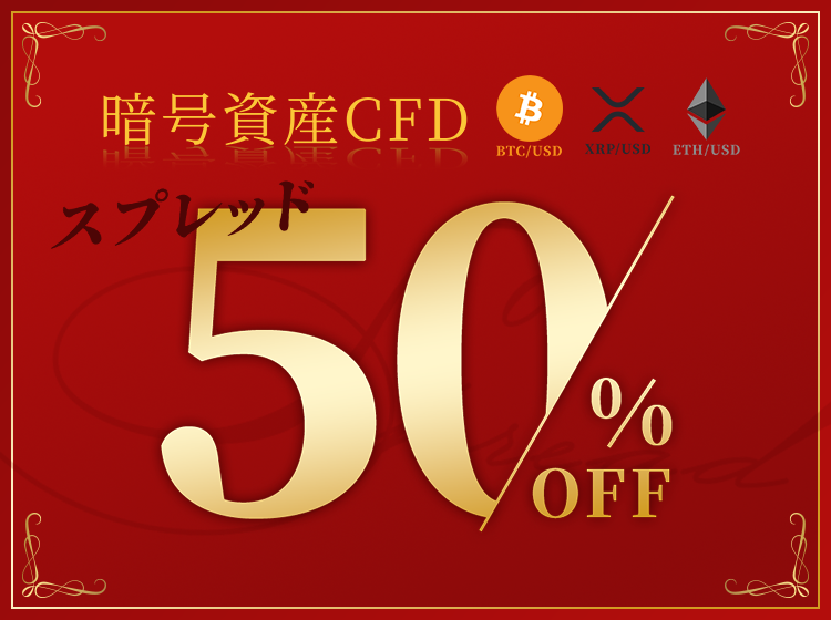 対ドル銘柄(BTC/USD・XRP/USD・ETH/USD)のスプレッドが50%縮小!キャンペーン開催中!基準値から概ね半減(50%OFF)となるようにスプレッドを変更いたします!